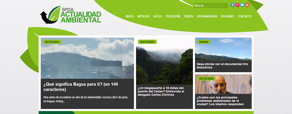 SPDA ACTUALIDAD AMBIENTAL es un servicio periodístico de la Sociedad Peruana de Derecho Ambiental (SPDA), que busca informar sobre las últimas noticias y acontecimientos relacionados con el medio ambiente del Perú y el mundo, en la búsqueda de una mayor conciencia y acción para la preservación de nuestro planeta. En este portal también podrás obtener y utilizar totalmente gratis videos, fotografías en alta resolución y los últimos boletines e investigaciones de las principales instituciones científicas del mundo.